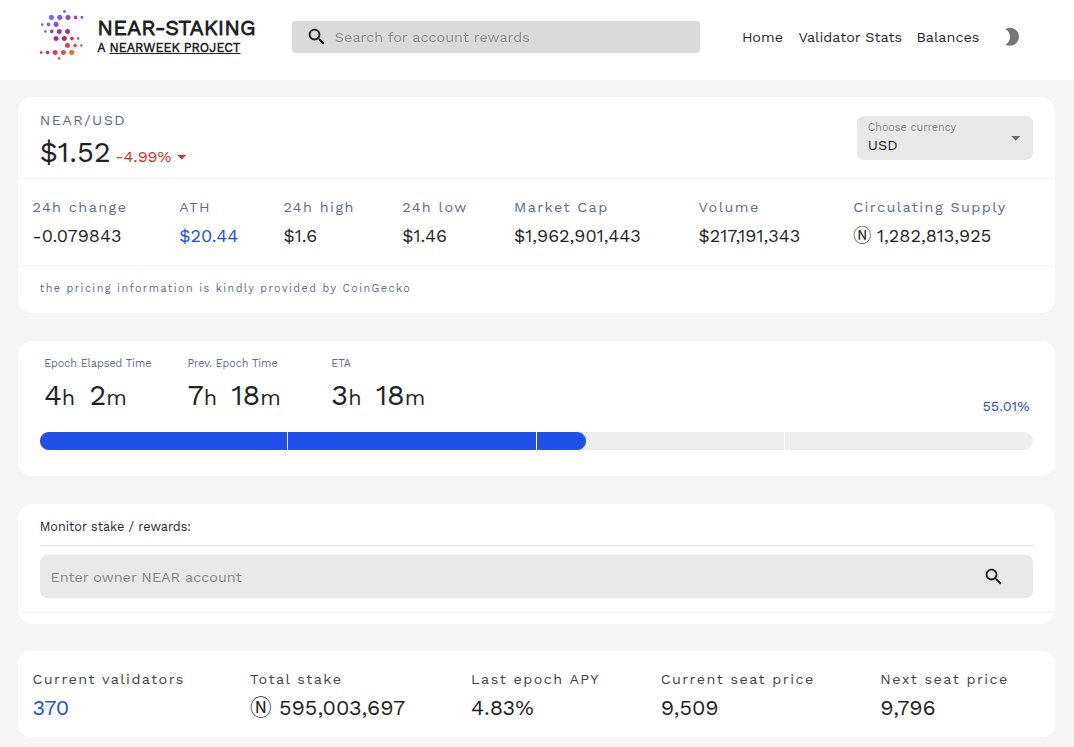 Yet, with only ~50% of all circulating NEAR staked, the staking APY hovers around 4.5% for direct staking and will vary for delegators according to the pool fees their validators have set.